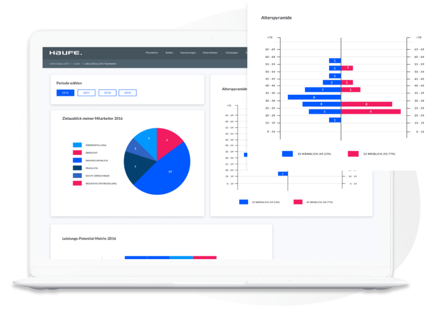 Die Möglichkeit, sowohl interne als auch externe Feedbacks über die Software einzuholen, schafft eine umfassende Mitarbeiterbeurteilung mit realistischen Einschätzungen der Fähigkeiten und Verhaltensweisen. Mitarbeitergespräche werden infolgedessen eher anerkannt und die Motivation zur Weiterentwicklung des Mitarbeiters deutlich gesteigert. Alle Zielvereinbarungen und Fortschritten lassen sich übersichtlich, anhand von grafischen Auswertungen, abbilden.